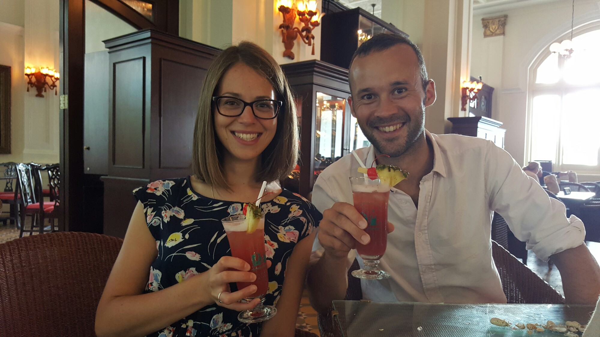 Trip to the iconic Raffles Hotel – we blew the backpacking budget and treated ourselves to famous Singapore Slings – totally worth it! We love how they still hold up the tradition of throwing peanut shells onto the floor